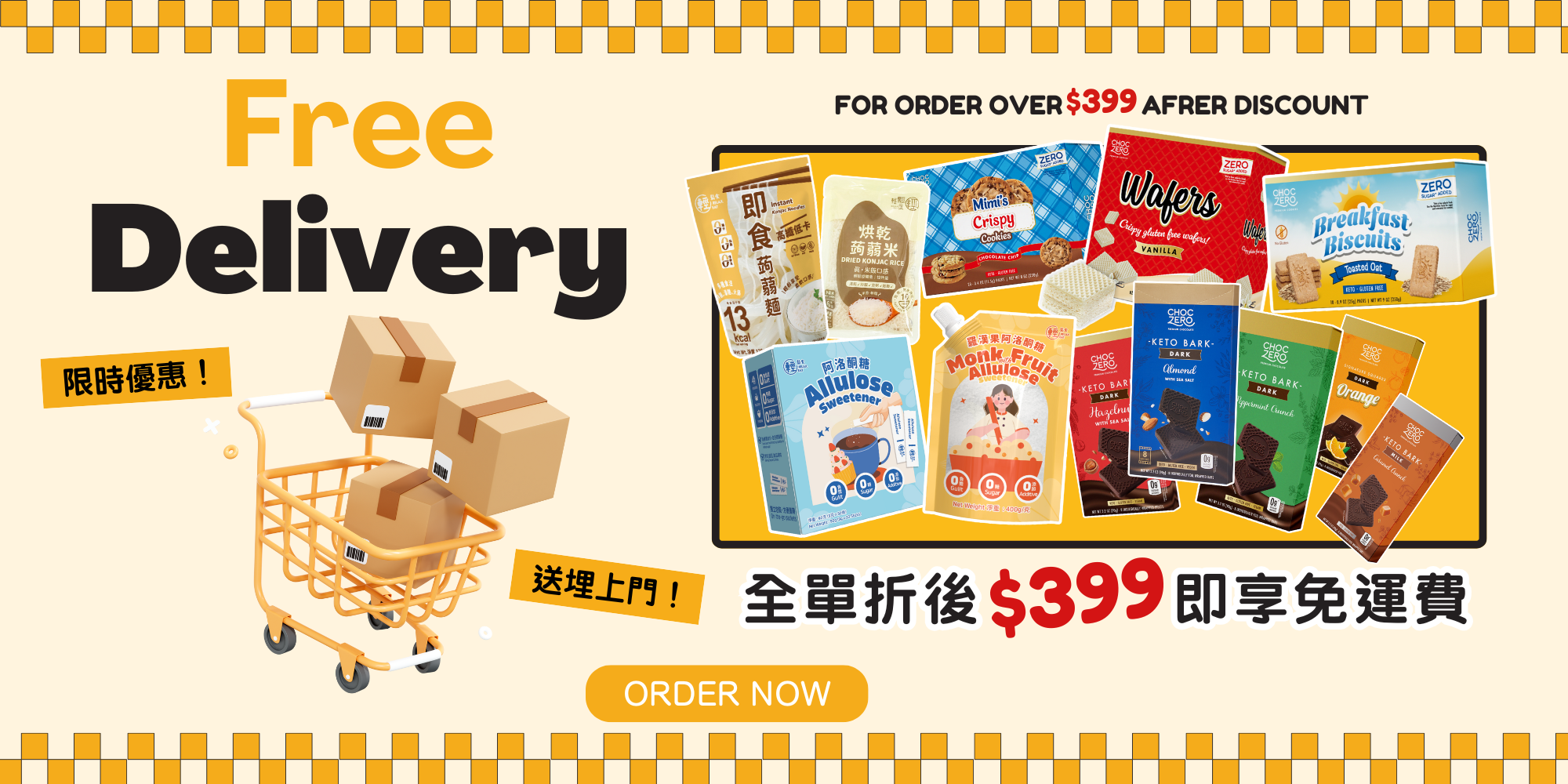 訂單折後滿$ 399 免運費